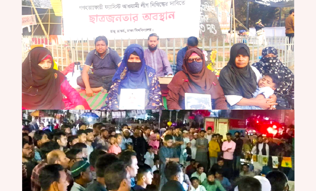 ফ্যাসিবাদী দল হিসেবে আওয়ামী লীগ ও তার দোসর রাজনৈতিক দলগুলোকে নিষিদ্ধ করার দাবিতে ঢাকা বিশ্ববিদ্যালয়ের রাজু ভাস্কর্যে দশমদিন ধরে ছাত্র-জনতার গণঅবস্থান কর্মসূচি চলছে। শুক্রবার আন্তর্জাতিক মাতৃভাষা দিবসকে ঘিরে এই গণঅবস্থান কর্মসূচিতে বিপুল জনসমাগম হয়।