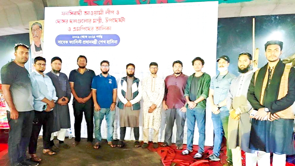 ঢাকা, ২২ ফেব্রুয়ারি ২০২৫: ঢাকা বিশ্ববিদ্যালয়ের রাজু ভাস্কর্যে গণঅবস্থানরত ছাত্র-জনতা শনিবার সন্ধ্যায় শেখ হাসিনার নেতৃত্বাধীন আওয়ামি লীগ ও তার সহযোগী রাজনৈতিক দলগুলোর মন্ত্রী, উপদেষ্টা ও এমপিদের ফ্যাসিবাদী ঘোষণা করে একটি তালিকা প্রকাশ করেছে। ছাত্র-জনতা তাদের দাবি জানিয়েছেন যে, এই তালিকাভুক্তদের ৭ থেকে ১৪ বছরের কারাদণ্ড দেওয়া হোক এবং নির্বাচনে অংশগ্রহণের অধিকার থেকে বঞ্চিত করা হোক।